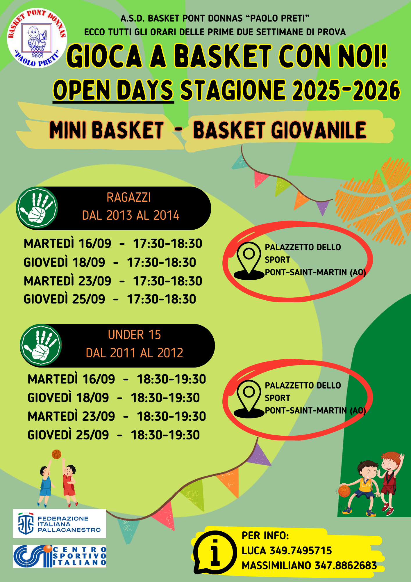 🏀Open days di prova a partire da lunedì 15 settembre 2025